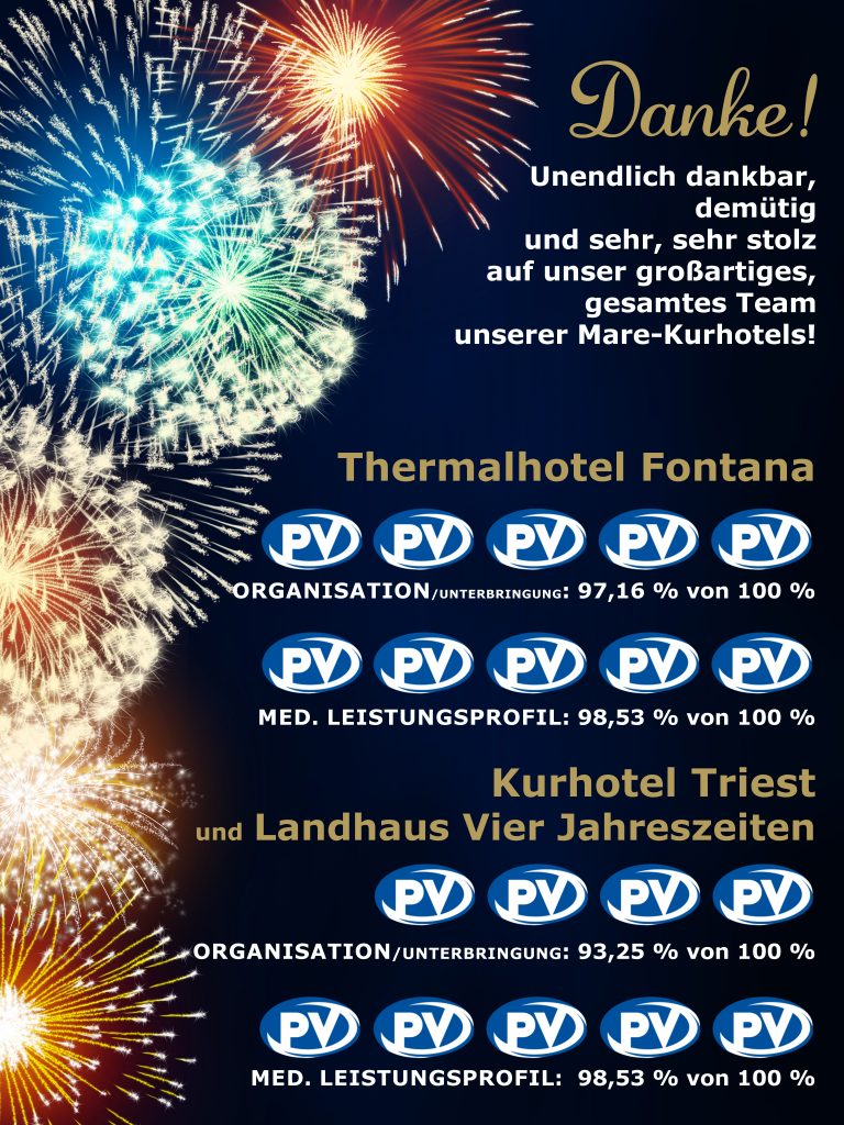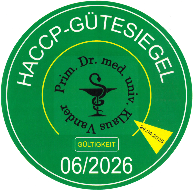 Unser HACCP-Gütesiegel in den Mare-Kurhotels und in unserem Altstadthaus wurde auch heuer wieder um 1 JAHR verlängert! Ein großes DANKE an alle Mitarbeiter:innen, die diese sehr hohen Hygieneanforderungen im Lebensmittelbereich täglich umsetzen.